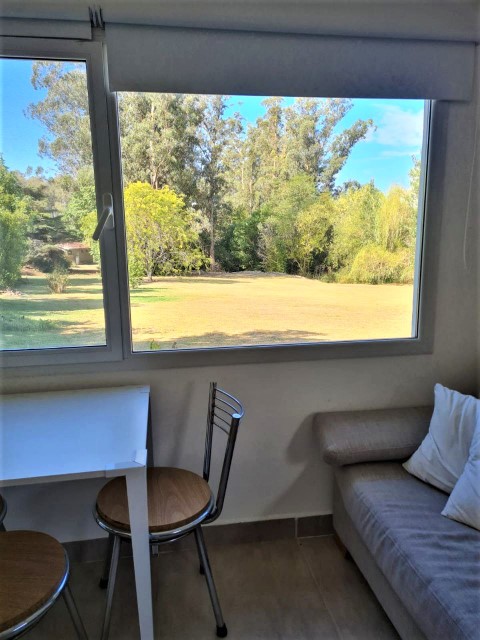 Hermosa cabañita ubicada en entorno natural único. Un lugar ideal para relajarse en pareja y desconectarse. Amplio parque con parrilla y fogón. Posee un ambiente muy práctico, 1 toilette, living - comedor integrados. Wi-fi, microondas, pava eléctrica, heladera y vajilla completa.